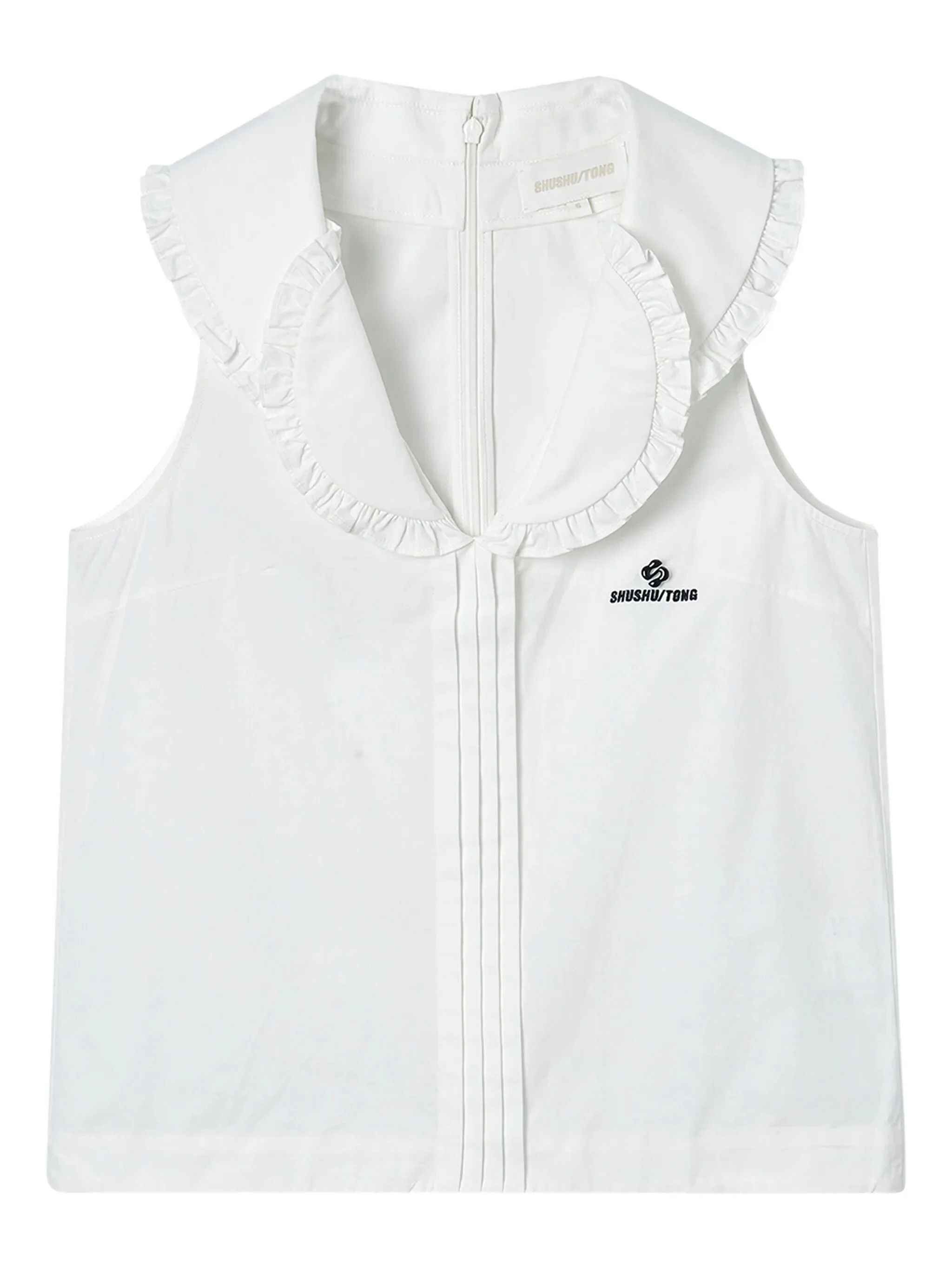 white ruffled collar sleeveless zip fastening logo print - Color: WHITE - Made in: China - Designer Style ID: MWDETO01 CO006 WH100 Composition and care Cotton: 100.0%