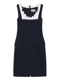 navy blue wool ruffled trim square neck sleeveless front pockets - Color: BLUE/WHITE - Made in: China - Designer Style ID: MWDEDR12 TUT152 NA100 Composition and care Wool: 100.0%
