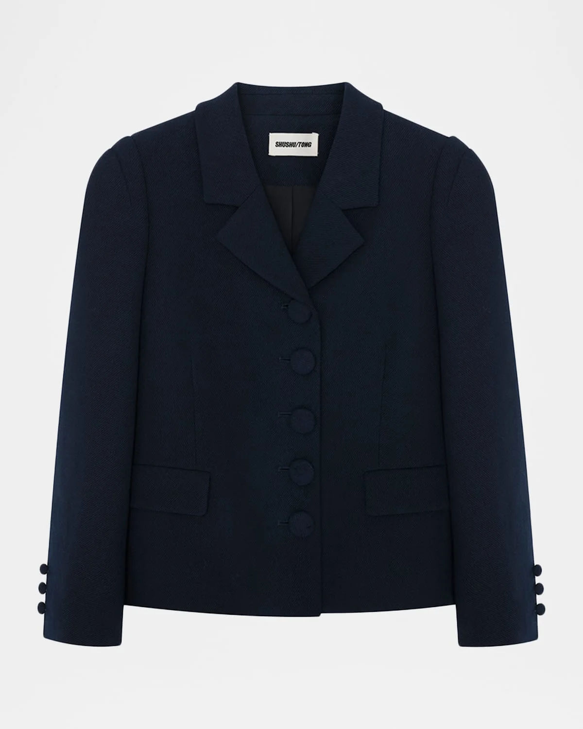 Crafted in a woolblend suiting fabric, this SHUSHU/TONG jacket is elevated with covered buttons along the front and cuffs. Notch lapels Singlebreasted front Long sleeves with button cuffs Flap pockets Tailored fit Cropped length Buttonfront Wool/polyester Lining: Polyester Dry clean Imported
