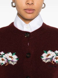 floral-applique buttoned cardigan Highlights - Red - Floral applique - Button fastening - Round neck - Long sleeves Imported Composition Wool 65%, Cotton 35% SIZE & FIT Model measurements Height 5 ft 9 in(1.76 m) Bust/Chest 31.88 in(81 cm) Hips 35.43 in(90 cm) Waist 24.8 in(63 cm) Washing instructions Read Manufacturer Guidelines