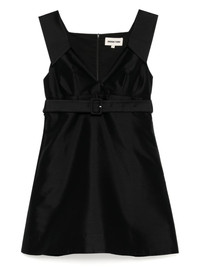 sleeveless-sleeve dress Highlights - Black - Rear zip fastening - Detachable and adjustable waist belt Imported Composition Outer: Wool 56%, Silk 44% Lining: Cotton 100% SIZE & FIT Model measurements Height 5 ft 9 in(1.76 m) Bust/Chest 30.7 in(78 cm) Hips 33.46 in(85 cm) Waist 24.4 in(62 cm) FittingInformation Designed for a slim fit that sits just away from the body offering a close yet comfortable fit The belt offers adjustability for fitted preferences Made from a midweight non-stretch fabric Washing instructions Dry Clean Only