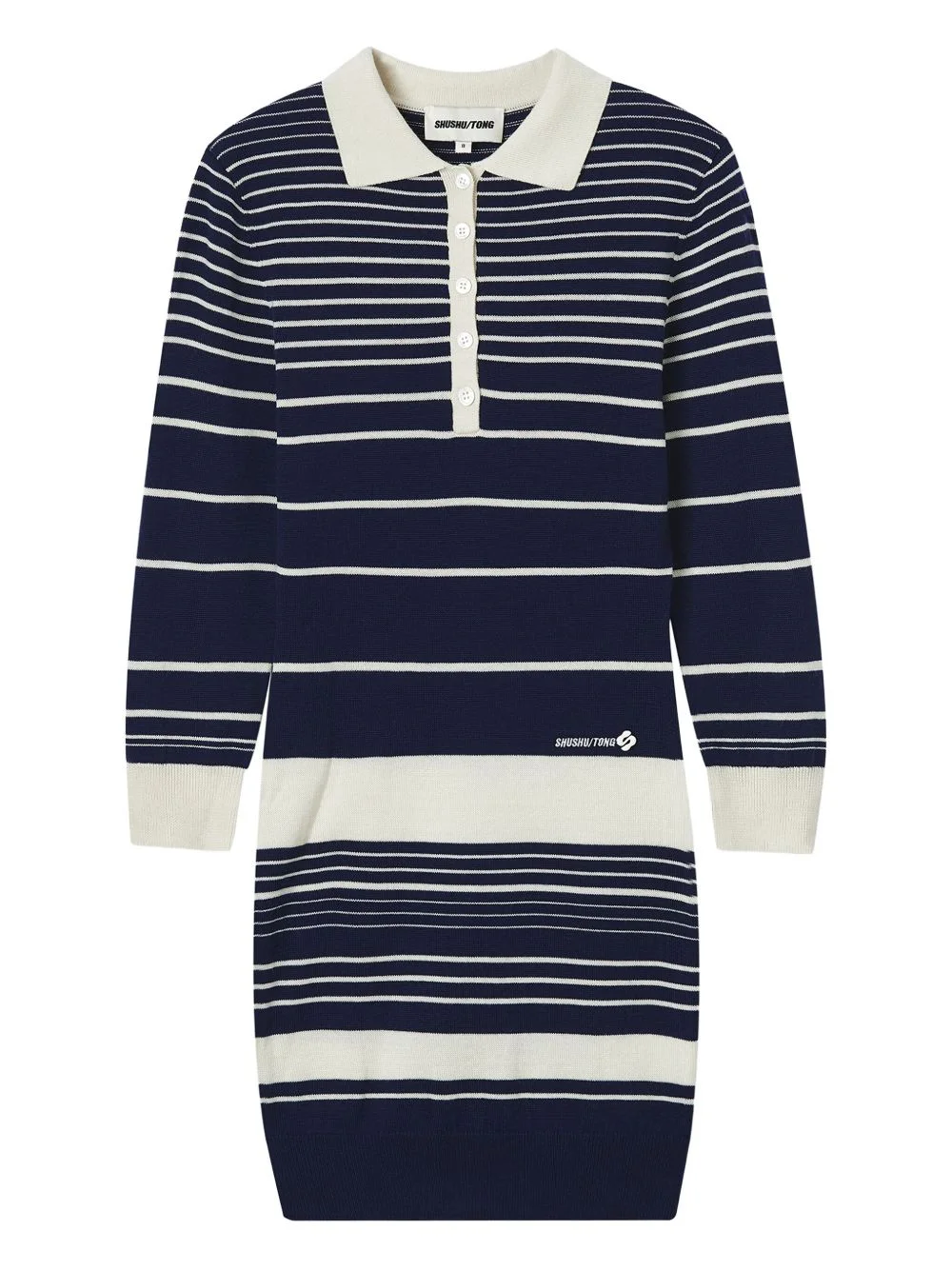 striped polo dress Highlights - Navy blue - Horizontal stripes - Long sleeves - Polo collar Imported Composition Polyester 69%, Acrylic 31% Washing instructions Read Manufacturer Guidelines