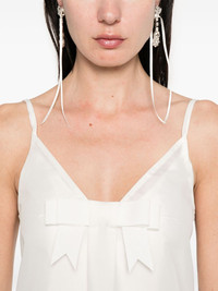 bow-detail top Highlights - White - Concealed rear zip fastening - Adjustable shoulder straps - Removable lining - Straight hem Imported Composition Polyester 79%, Polyamide 21% SIZE & FIT Model measurements Height 5 ft 10 in(1.78 m) Bust/Chest 33.46 in(85 cm) Hips 36.22 in(92 cm) Waist 23.22 in(59 cm) FittingInformation Designed for a slim fit that sits just away from the body offering a close yet comfortable fit The adjustable shoulder straps allow for a preferred fit when worn Made from a midweight non-stretch fabric, this piece offers minimal elasticity when worn