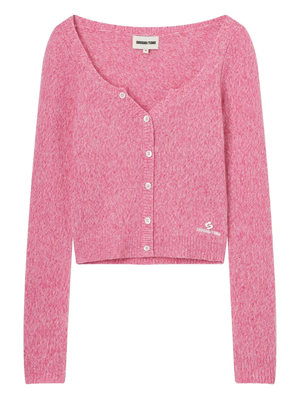 buttoned logo cardigan Highlights - Pink - Wool - Button fastening - Logo detail - Long sleeves - Boat neck Imported Composition Wool 60%, Polyamide 40% Washing instructions Read Manufacturer Guidelines