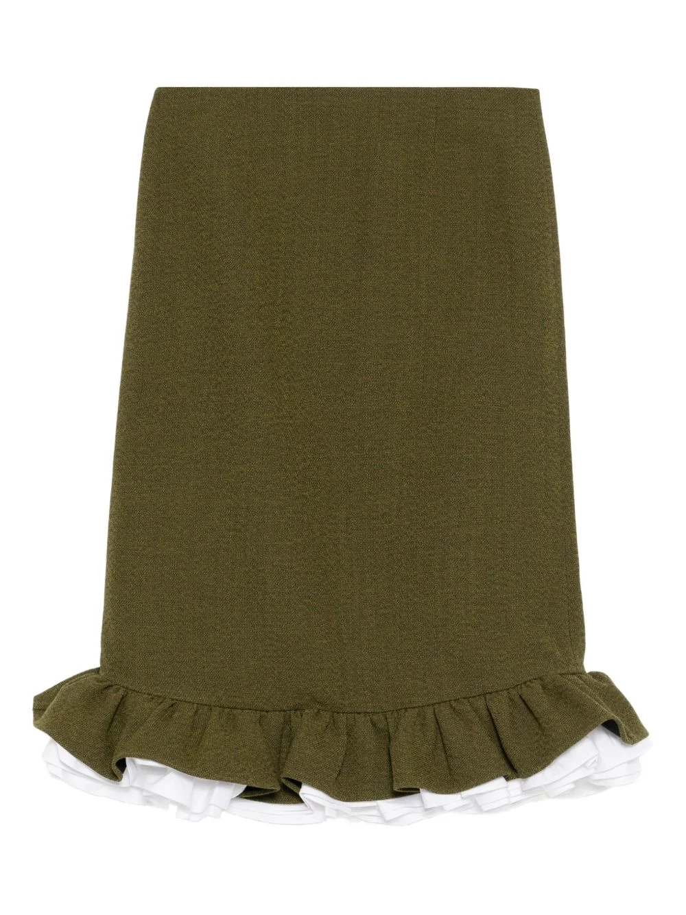 wool skirt Highlights - Khaki green - Rear zip fastening - Peplum hem Imported Composition Lining: Polyester 100% Outer: Wool 100% Washing instructions Dry Clean Only