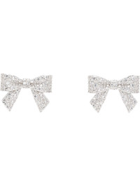 Pair of stud earrings in silver tone. · Bow with pave-set glass crystals at face · Post-stud fastening · H0.75" x W1" Part of the Shushu/Tong x YVMIN collaboration. Supplier color: Silver Metal. Made in Japan 261901F022002