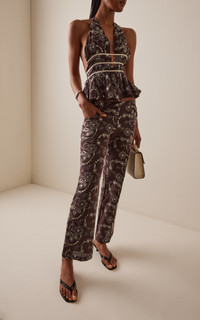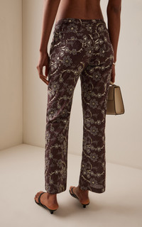 Cera Embroidered Straight-Leg Pants brown