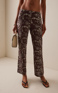 Istanbul-based Siedres is among the most fun purveyors of Y2K fashion, serving hypnotic multicolored prints across silhouettes that are equal parts comfy and cool—with no shortage of skin. The -Cera' pants are a mid-to-low rise design detailed with threadwork embroidery and embellished with sequins. PRODUCT DETAILS - Pre-Fall '25 - Concealed zip and hook fastening - Composition: 100% Polyester - Dry clean only - Made in Turkey SIZE & FIT - Designed for a slim fit