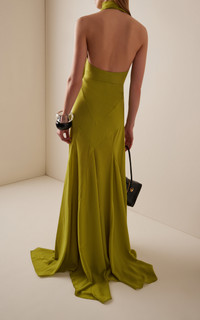 Istanbul-based Siedres is among the most fun purveyors of Y2K fashion, serving hypnotic multicolored prints across silhouettes that are equal parts comfy and cool—with no shortage of skin. Made just for us, the 'Raye' dress is cut on the bias from fluid crepe to a fitted silhouette with a wrap-around halter neck. The skirt's full silhouette is created with godet panels that fall to a handkerchief hem. PRODUCT DETAILS - Fall '24 - Zip fastening - Composition: 100% polyester - Designer color: Lime - Dry clean - Imported SIZE & FIT - Designed for a slim fit