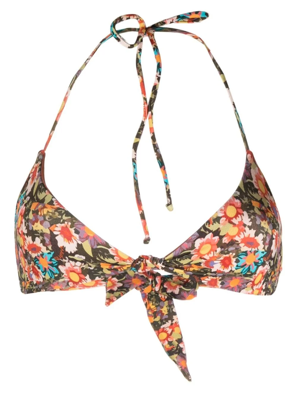 floral-print halterneck bikini top Highlights - Olive green/multicolour - Stretch-design - All-over floral print - Knot detailing - Halterneck tie fastening - Rear tie fastening - Be mindful to try on swimwear over your own garments. Imported Composition Polyamide 80%, Elastane 20%