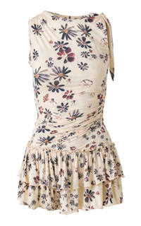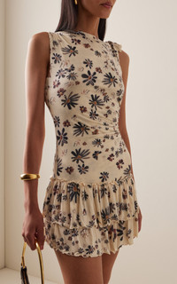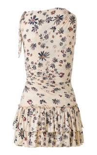PRODUCT DETAILS - Pre-Fall '25 - Floral-printed, sleeveless, ruched, ruffled mini hem - Unlined - Composition: 90% Polyester 10% Elastane - Slip on - *Dry clean or machine wash - Made in Turkey