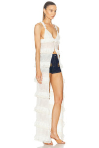 Details - Crepe textile - Imported - Dry clean recommended - Unlined - Front button closure - Ruffle-tiered design - Crepe fabric with eyelet accent throughout - Our Style No. SEDF-WS46 - Manufacturer Style No. WCL06TP01EC