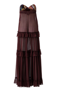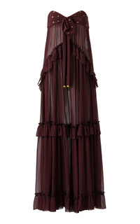 Josiane Embellished Ruffled Chiffon Maxi Dress brown