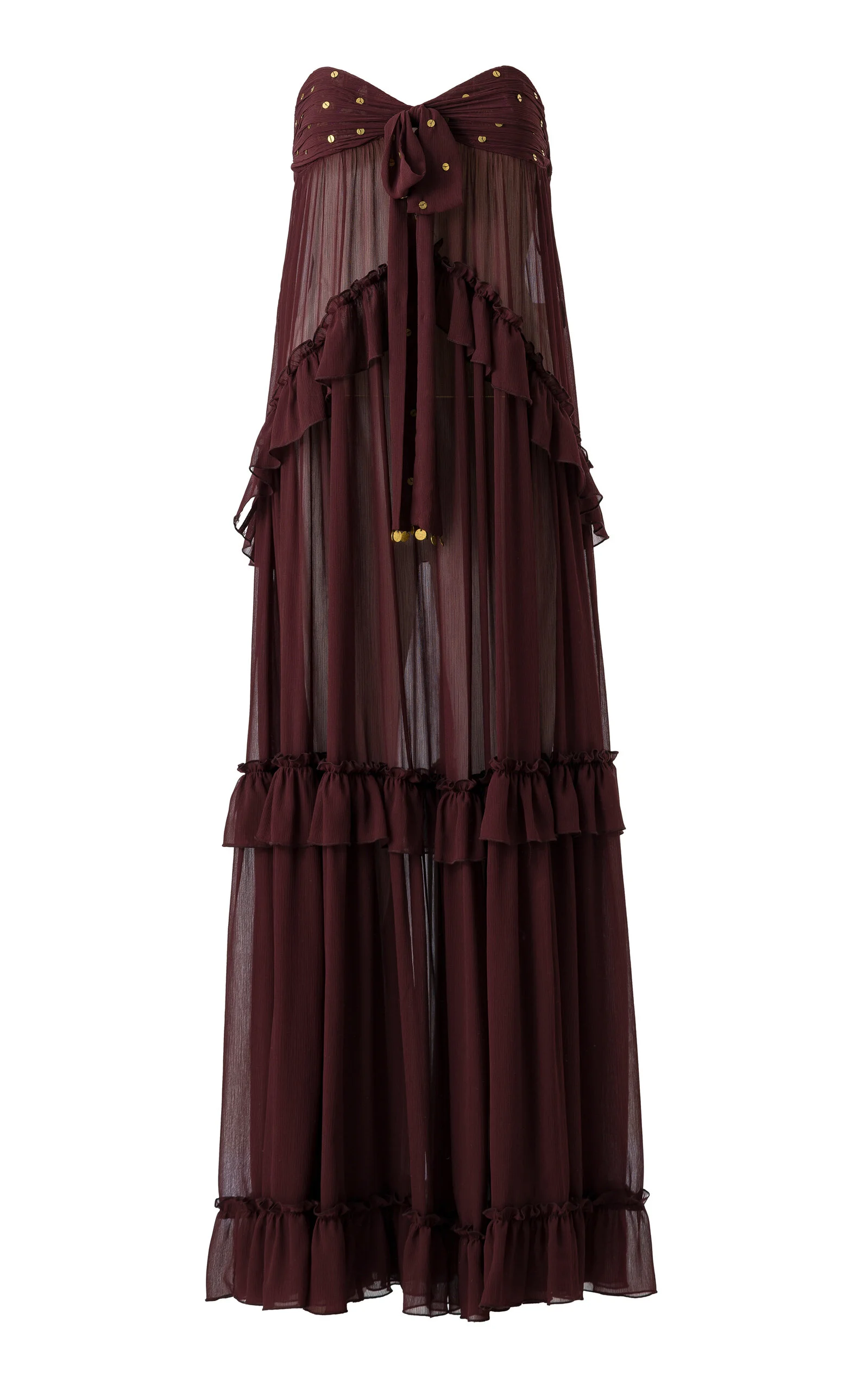 PRODUCT DETAILS - Pre-Fall '25 - Bead-embellished, strapless, ruffled, maxi hem - Unlined - Composition: 100% Polyester - Slip on - *Dry clean only - Made in Turkey