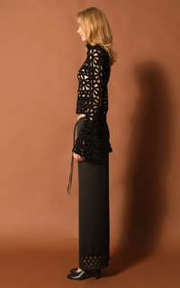 Embroidered fluted top with front zipper PRODUCT DETAILS - Fall/Winter '25 - Open chunky knit, embroidered, zip front, fluted sleeve - Composition: 100% Polyester Details; 97% Polyester 3% Elastane - Zip fastening through front - *Dry clean only - Made in Turkey