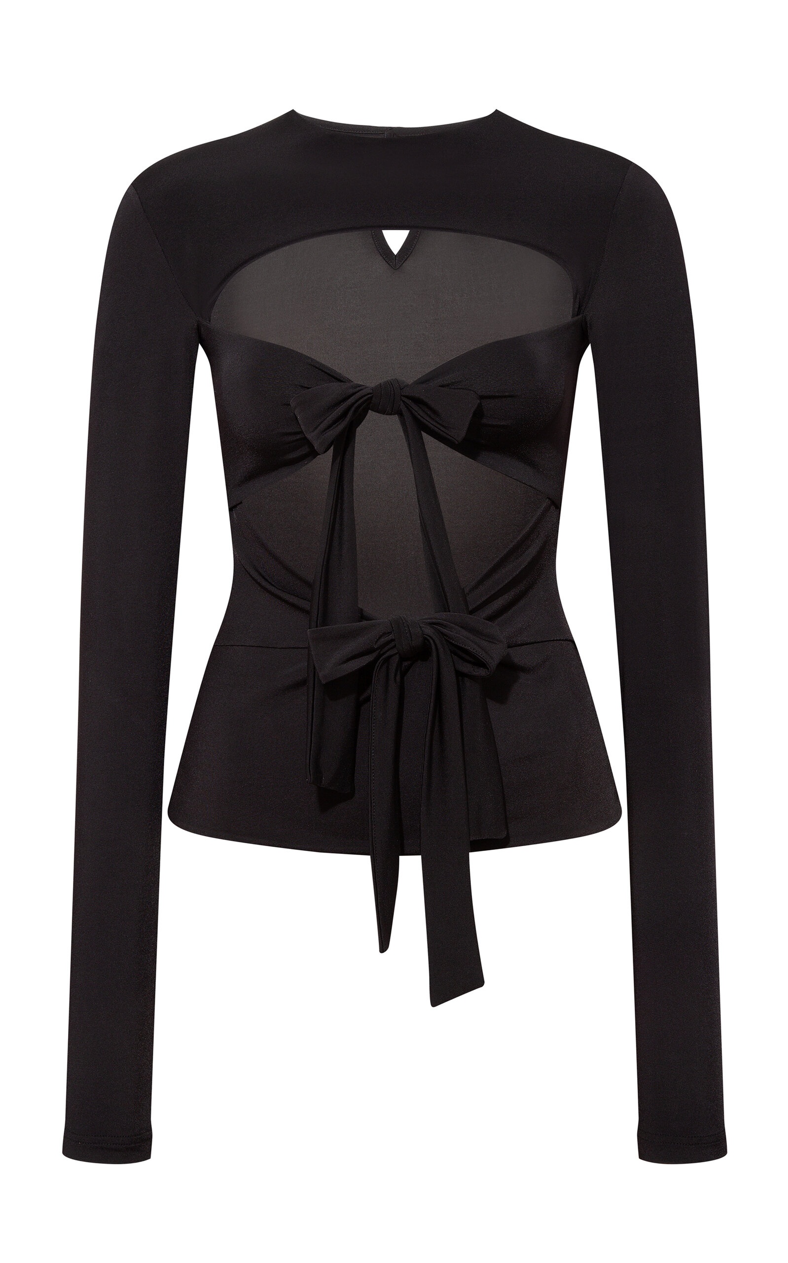 PRODUCT DETAILS - Slim fit, crewneck, long sleeves, cutout tie-front details - Unlined - Composition: 95% Polyester, 5% Lycra - Color: black - Slip on - Made in Turkey