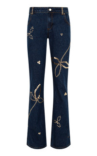 Luisa Embellished Rigid Low-Rise Straight-Leg Jeans navy