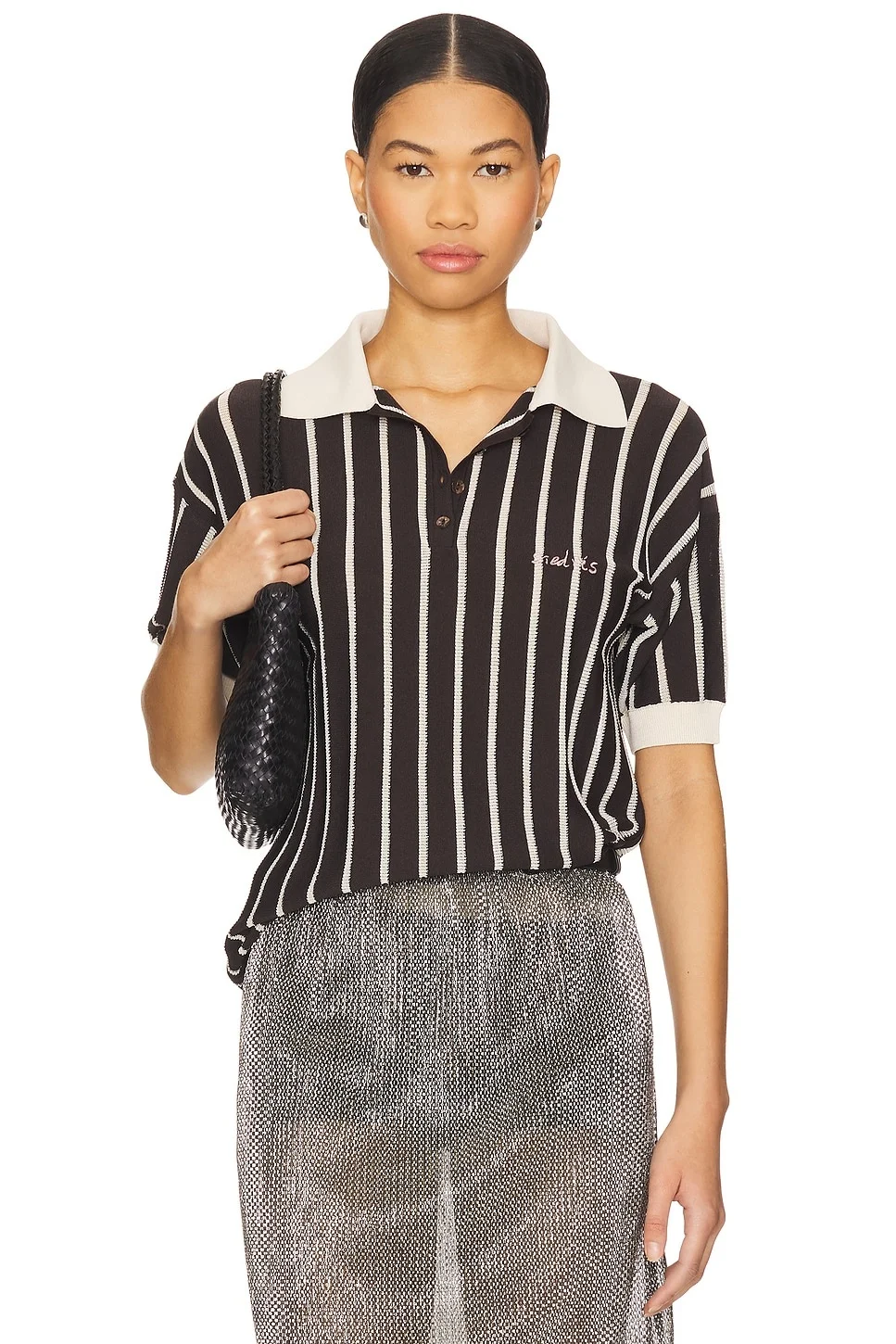 - 65% viscose 35% polyamide - Hand wash - Front partial button closure - Ribbed trim - Front embroidered logo - Midweight knit fabric - Garment is made with a semi-sheer fabric, undergarments can show through - Revolve Style No. SRER-WS33 - Manufacturer Style No. WSS25KW03