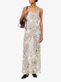 Nensi Floral-Print Open-Back Woven Maxi Dress