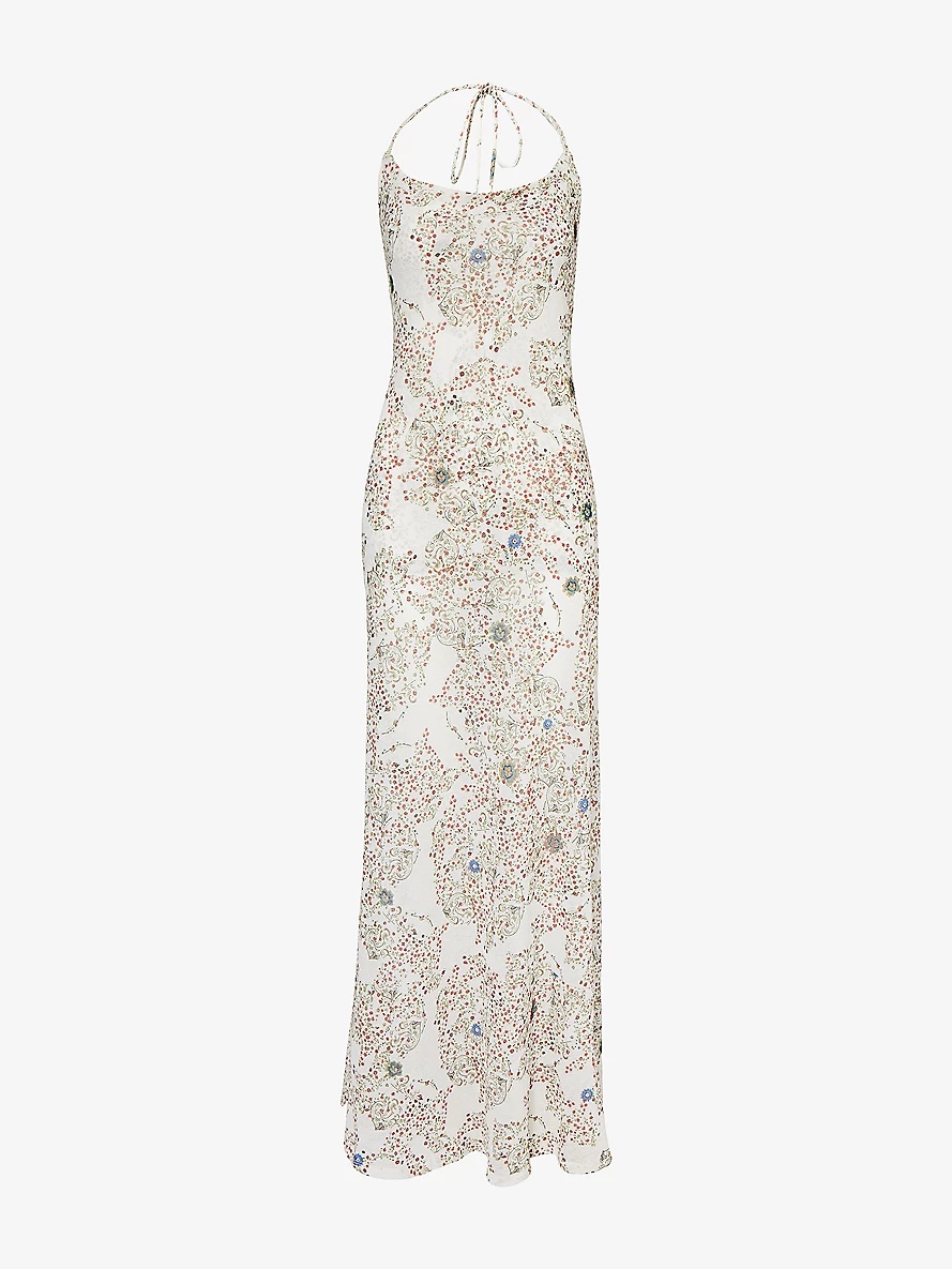 PRODUCT DETAILS - SIEDRES woven maxi dress - 100% polyester - Self-tie fastening at back - Regular fit, halterneck, open back, all-over floral print, partially lined, maxi length - Dry clean - Made in Turkey - True to size - Size small: length - Model is 5ft 10in/1.78m and wears a size small - Lightweight, non-stretch Ref: R04449809