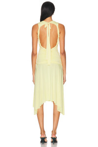 Details - 96% polyester, 4% elastane - Machine wash - Partially lined - Back tie-up closure - Back cut-out design - Slinky jersey fabric with ruching detail and asymmetrical hem - Made in Turkey - Our Style No. SEDF-WD77 - Manufacturer Style No. WSS25DR25