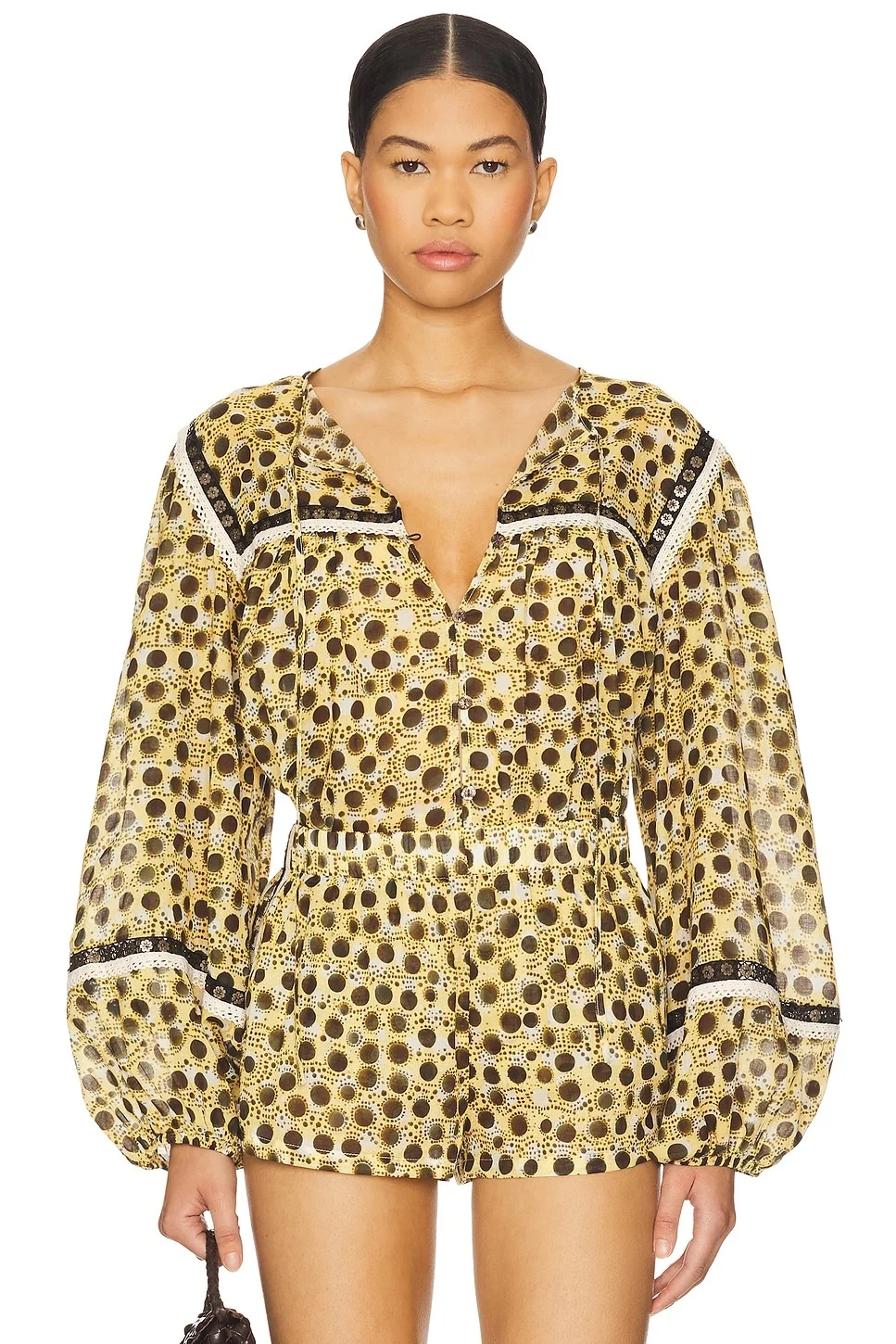 - 100% cotton - Dry clean only - Front button loop closure - Front tie accent - Beaded floral detailing with lace trim - Lightweight linen fabric - Item not sold as a set - Revolve Style No. SRER-WS41 - Manufacturer Style No. WSS25TP20