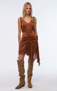 Clemens Gathered Satin Mini Dress brown