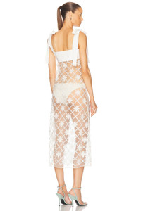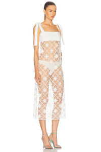 Details - Self: 100% cotton - Contrast Fabric: 100% polyester - Made in Turkey - Dry clean only - Partially lined at bust - Hidden back zip closure - Tie shoulder straps - Lightweight mesh fabric with allover floral design and sequin detailing - Garment is intentionally sheer, undergarments will show through. - Please note undergarment not included - Our Style No. SEDF-WD83 - Manufacturer Style No. WSS25DR29