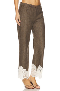 - Self: 60% polyester 30% wool 10% viscose Lining: 100% polyester Contrast Fabric: 52% polyamide 48% organic cotton - Dry clean only - Zip fly with button closure - Side seam pockets - Lace hem - Heavyweight twill fabric - Item not sold as a set.19" at the leg opening - Revolve Style No. SRER-WP21 - Manufacturer Style No. WFW25PA14