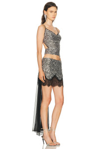 Details - 100% polyester - Made in Turkey - Dry clean - Mesh-lined - Pull-on styling with elasticized band at back - Self-tie sash at back - Lightweight mesh textile with sequin embellishments - Chiffon sash-tie detail - Item not sold as set - Our Style No. SEDF-WS73 - Manufacturer Style No. WRS26TP29