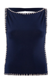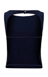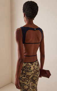 Istanbul-based Siedres is among the most fun purveyors of Y2K fashion, serving hypnotic multicolored prints across silhouettes that are equal parts comfy and cool—with no shortage of skin. From the front ‘Zelna’ is a boat-neck tank with decorative stud detailing. At the back, the silhouette is completely open, held together by a single button beneath the nape and thin straps which also pull in the bust and waist. The slightly cropped hem works well with low-rise pants. PRODUCT DETAILS - Resort ‘26 - Button fastening - Composition: 96% polyester, 4% elastane - Dry clean - Imported