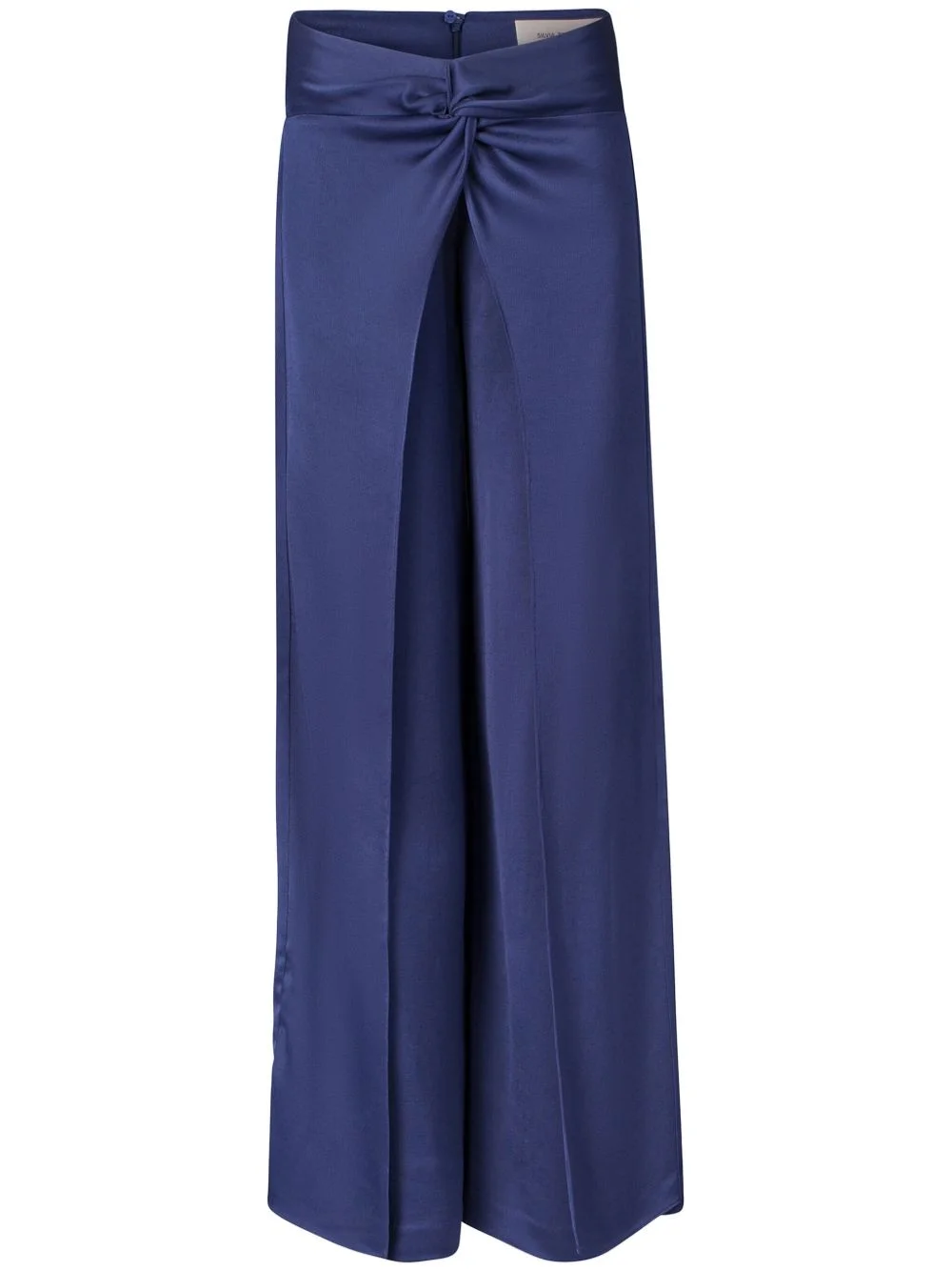 Nadira flared trousers Highlights - Navy blue - Satin finish - Rear zip fastening - Ruched detailing - Flared design - Long length Imported Composition Acetate 50%, Viscose 50% Washing instructions Dry Clean Only