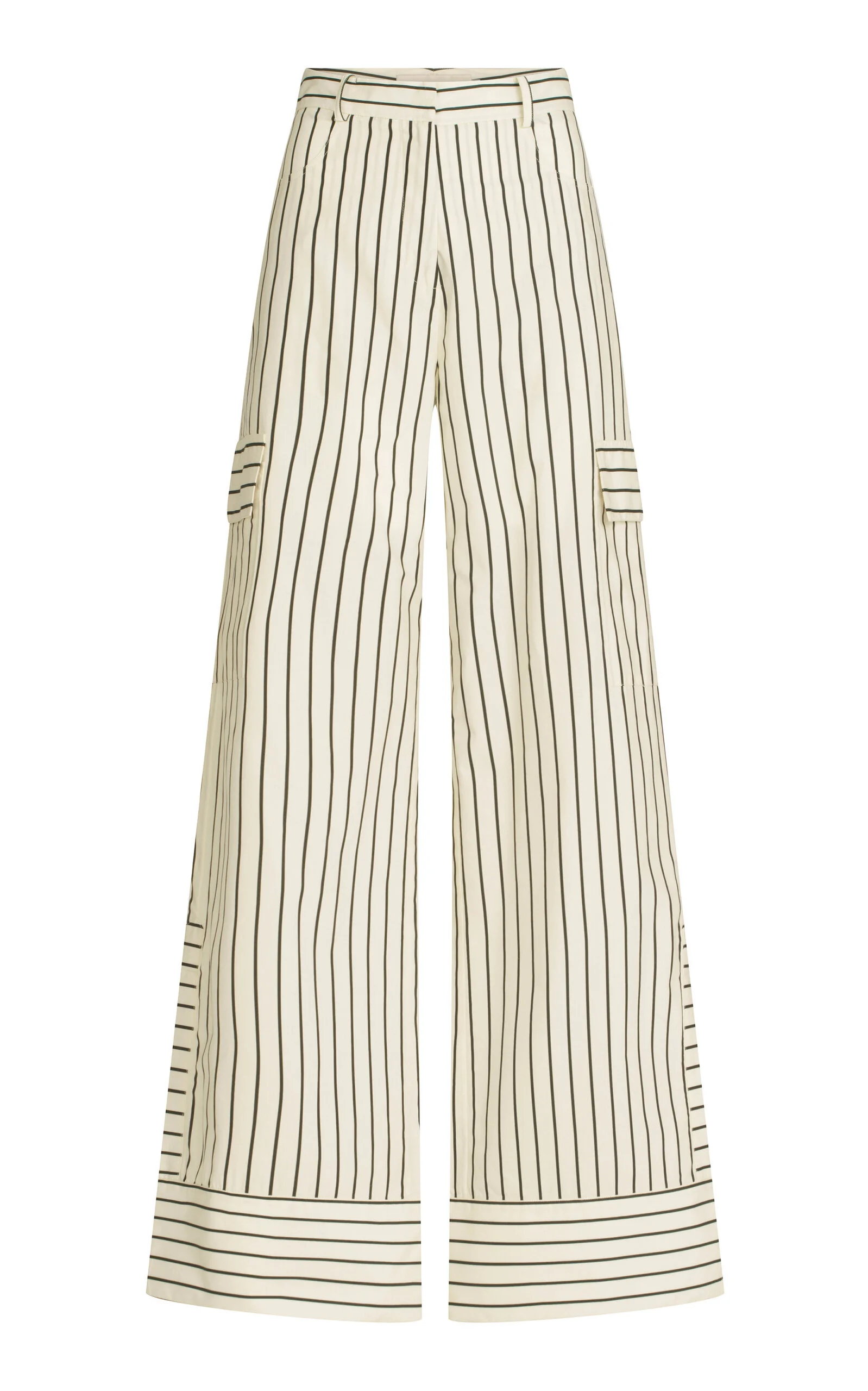 PRODUCT DETAILS - High-waisted, flared leg, cargo pocket details - Concealed zip and hook fastening - Unlined - Composition: 100% cotton - Color: stripe - Dry clean only - Pre-Fall '25