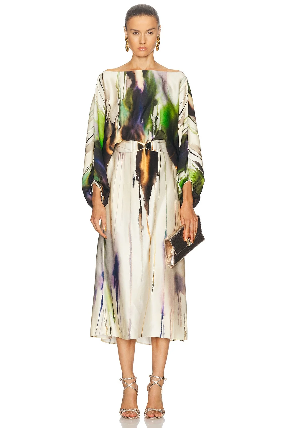 Details - Self: 100% viscose - Lining: 100% polyester - Made in Colombia - Dry clean only - Partially lined - Hidden back zipper closure - Optional tonal belt at waist - Cut-out detail at back - Satin fabric - Our Style No. STCH-WD108 - Manufacturer Style No. ST240901