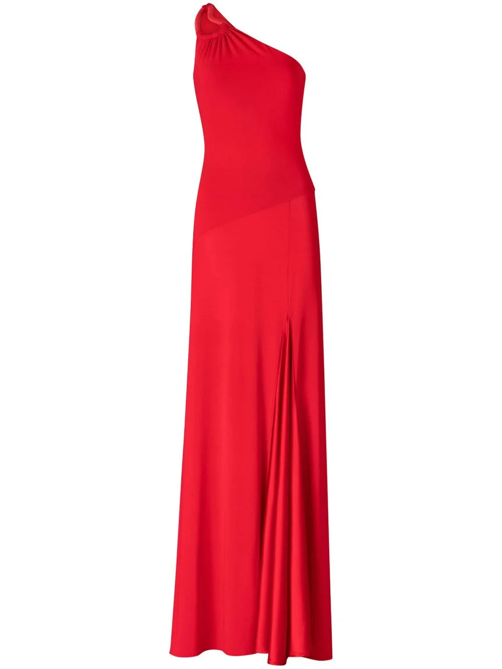 Kanya dress Highlights - Bright red - Asymmetric neck - One-shoulder - Cut-out detailing - Ruched detailing - Straight hem - Floor-length Imported Composition Acrylic 80%, Polyamide 20% Washing instructions Dry Clean Only
