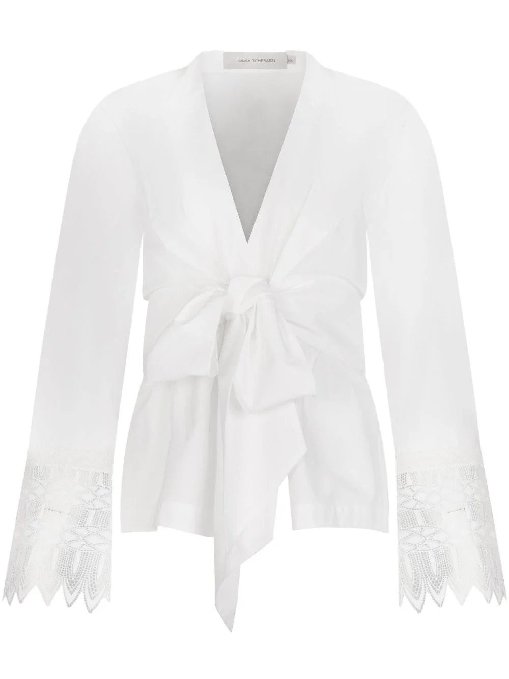 Saanvi blouse Highlights - White - Front tie fastening - Belted waist - Lace trim - Scallop edge Imported Composition Cotton 100% Washing instructions Dry Clean Only