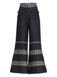 Zina trousers Highlights - Black - Embroidered waistband - Two front pockets - Contrasting patterns - Flared hem Imported Composition Organic Linen 85%, Polyester 15% Washing instructions Dry Clean Only