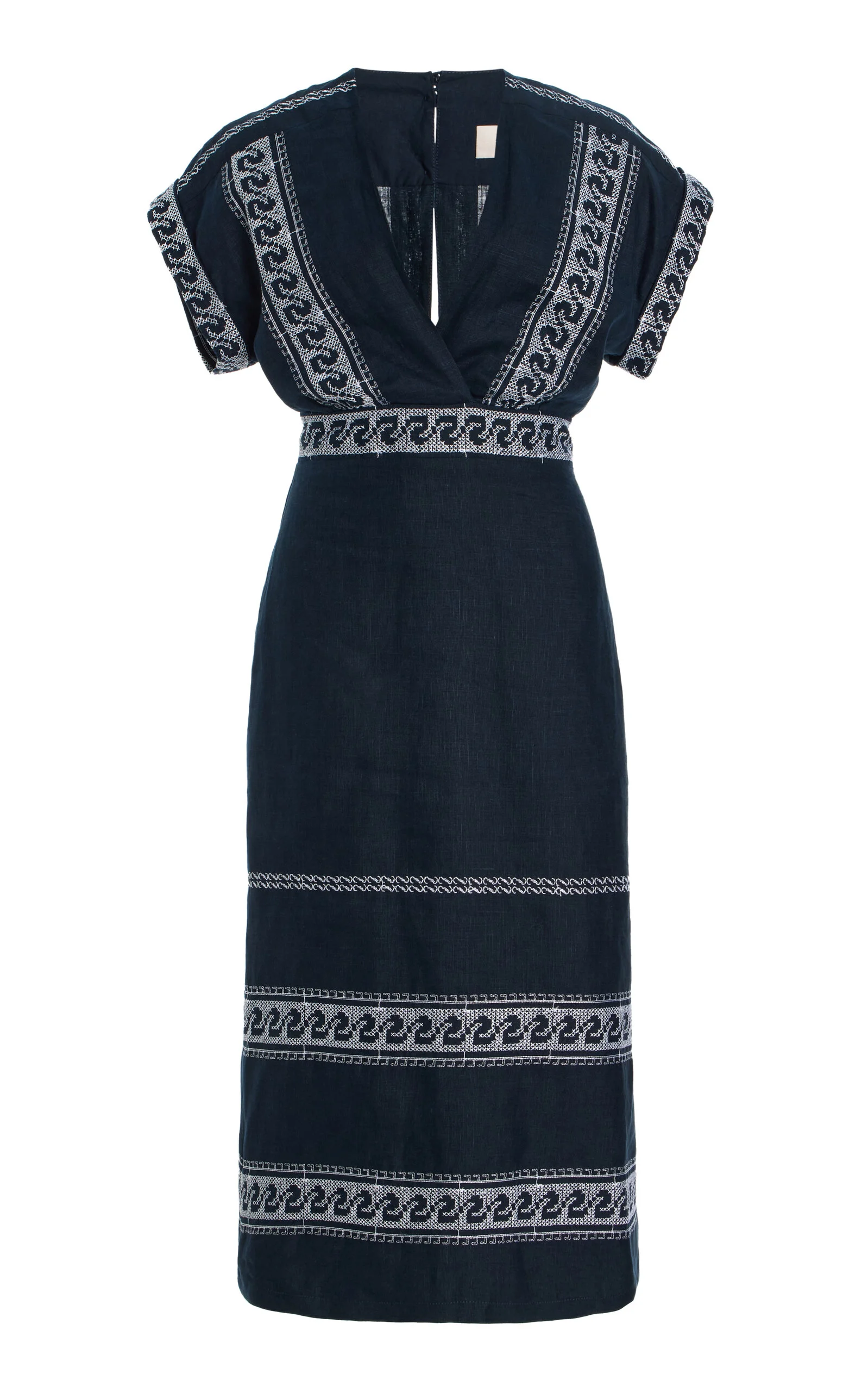 Ady Embroidered Linen-Blend Midi Dress navy
