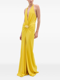 Aiko dress Highlights - Yellow - Plunging neckline - Twist detail at waist - Circular embellishment - Tie-back closure Imported Composition Polyamide 85%, Elastane 15% Washing instructions Dry Clean Only
