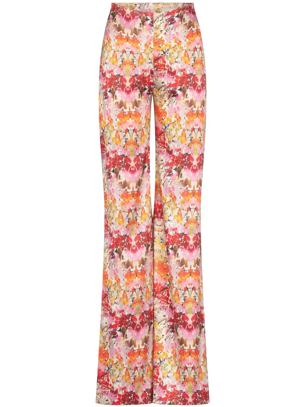 Andie trousers Highlights - Multicolour - Silk blend - Concealed rear fastening - Abstract pattern print - High-waisted - Flared Imported Composition Silk 94%, Elastane 6% Washing instructions Dry Clean Only