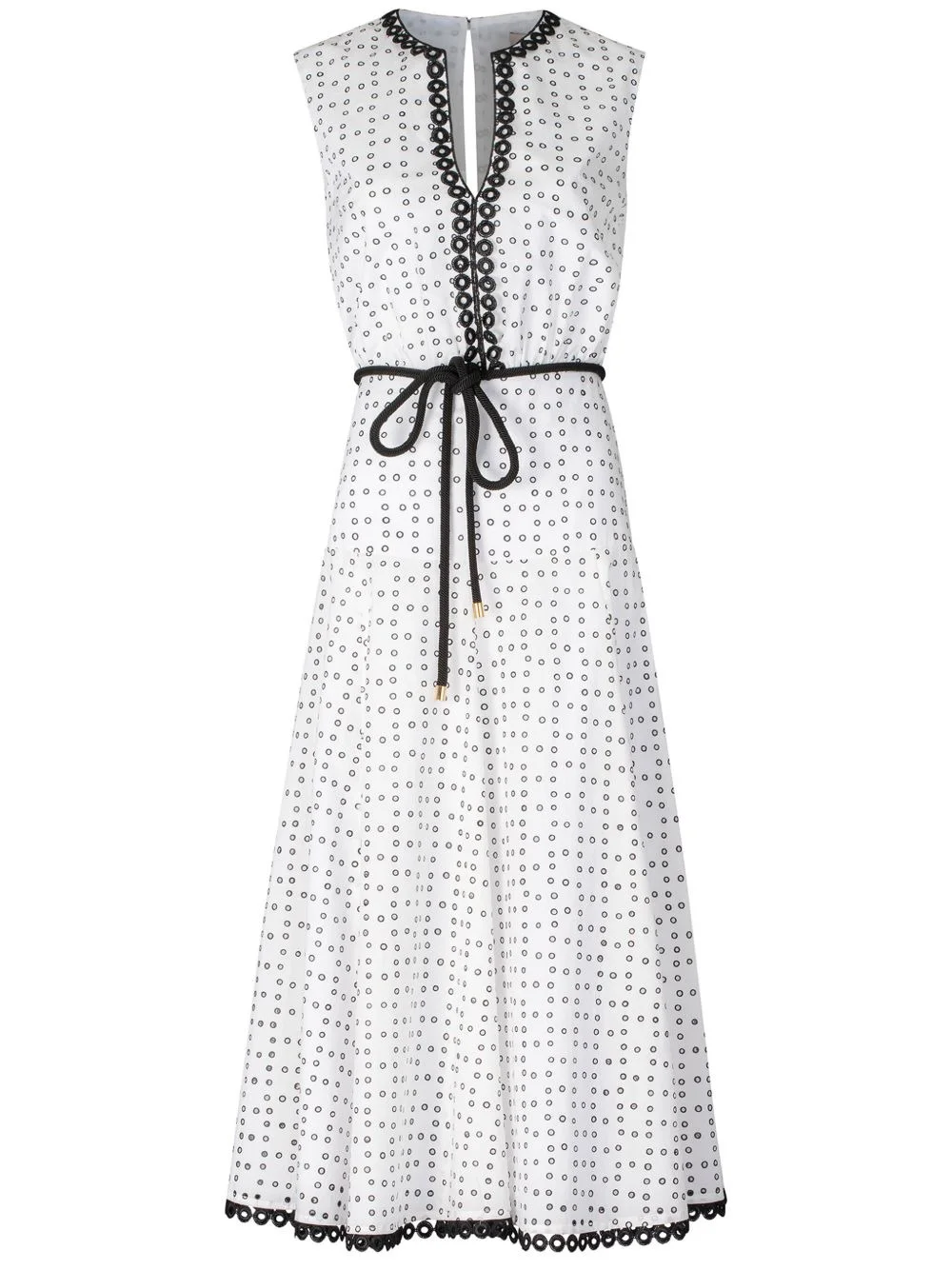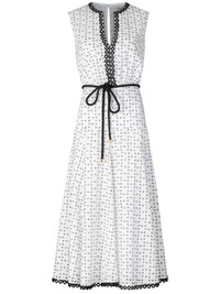 Bora midi dress Highlights - White/black - Cotton - Single rear button fastening - Polka dot print - Contrasting trim - Round split neck - Sleeveless - Detachable and adjustable waist belt - Scallop hem - Mid-length Imported Composition Cotton 100% Washing instructions Dry Clean Only