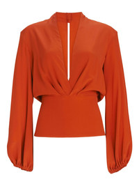 Delfina V-neck blouse Highlights - Burnt orange - V-neck - Bishop sleeves - Long sleeve Imported Composition Viscose 97%, Elastane 3% Washing instructions Dry Clean Only