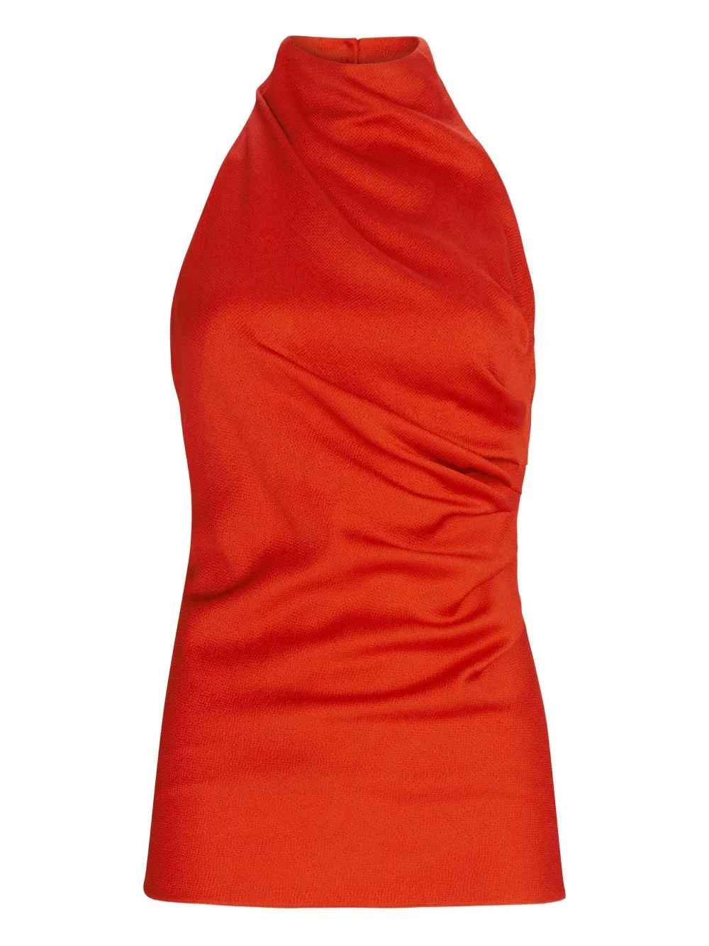 Dina top Highlights - Red - Draped design - High neck - Sleeveless - Open back Imported Composition Viscose 51%, Acetate 49% Washing instructions Dry Clean Only