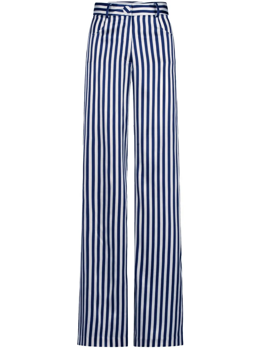 Emine trousers Highlights - Navy blue - Concealed fly and button fastening - Belt loops - Two rounded pockets to the sides - Vertical stripe pattern Imported Composition Silk 94%, Elastane 6%