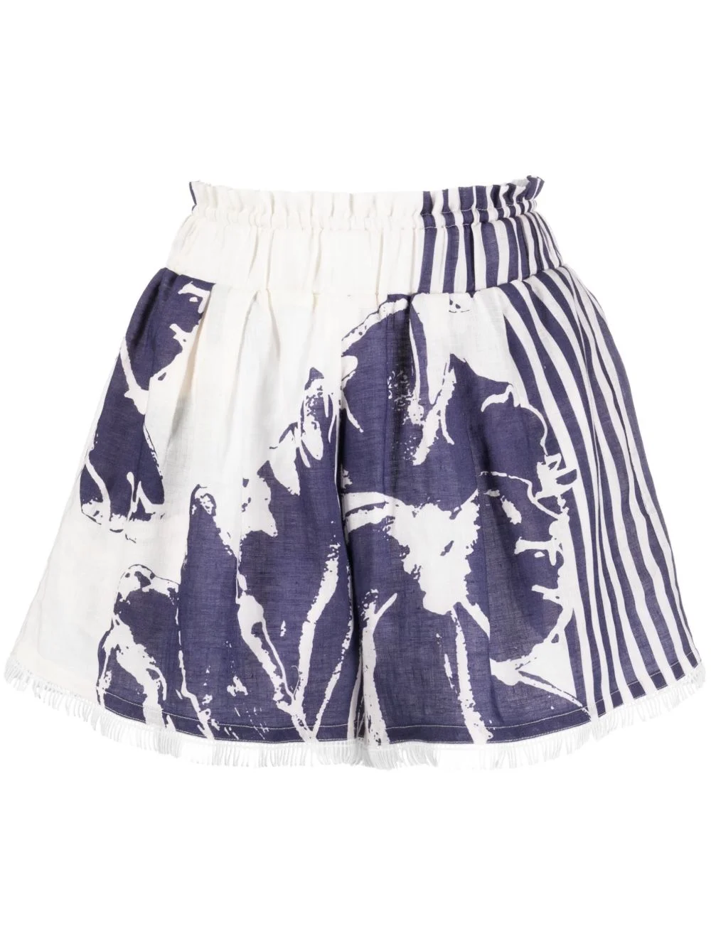 floral-print striped cotton shorts Highlights - White/navy blue - Cotton - Floral print - Vertical stripe print - Paperbag waist - Two side slit pockets - Thigh-length Imported Composition Lining: Cotton 100% SIZE & FIT Model measurements Height 5 ft 11 in(1.8 m) Bust/Chest 31.49 in(80 cm) Hips 35.43 in(90 cm) Waist 24.4 in(62 cm) FittingInformation Designed for a relaxed, roomy fit The elasticated waist allows for a comfortable fit Made from a midweight non-stretch fabric This piece fits true to size – take your usual size