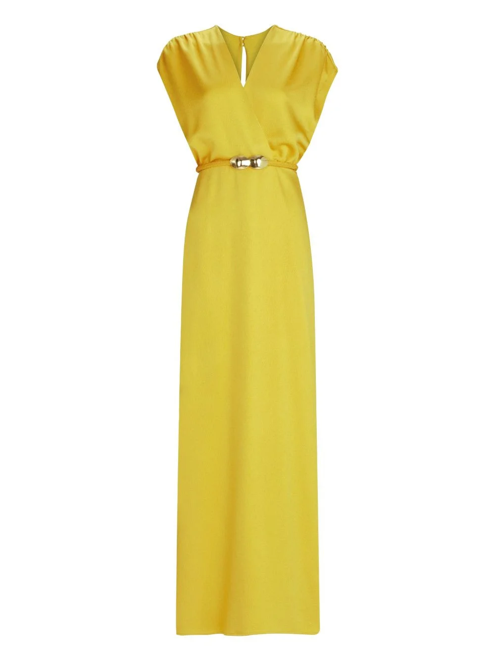 Freda maxi dress Highlights - Bright yellow - Crossover neckline - Gathered cap sleeves - Metallic buckle belt Imported Composition Viscose 51%, Acetate 49% Washing instructions Dry Clean Only