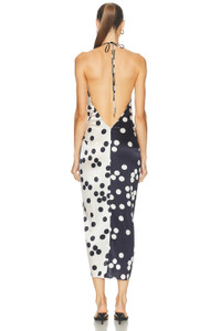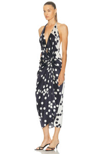 Details - 94% silk, 6% elastane - Machine wash - Unlined - Hidden back zip closure - Halterneck styling with tie closure - Front knot accent - Plunging neckline - Midweight satin fabric - Made in Colombia - Our Style No. STCH-WD125 - Manufacturer Style No. ST250422