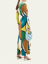 Ilania Abstract-Print Ruched Long-Sleeve Maxi Dress