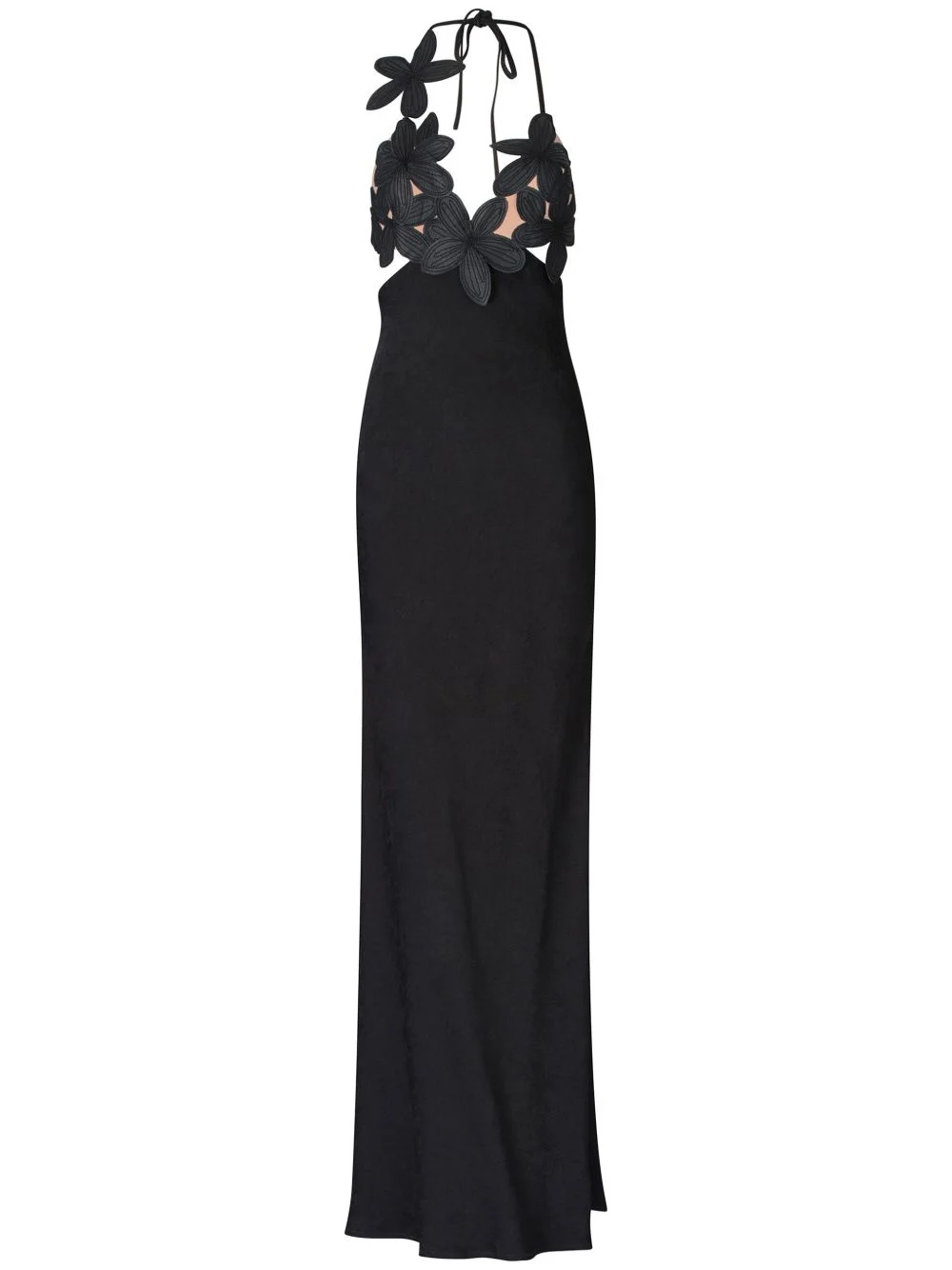 Lua maxi dress Highlights - Black - Stretch-silk - Halterneck tie fastening - Rear tie fastening - Faux-flower detailing - V-neck - Sleeveless - Flared hem - Long length Imported Composition Lining: Silk 92%, Elastane 8% Outer: Viscose 100% Washing instructions Dry Clean Only