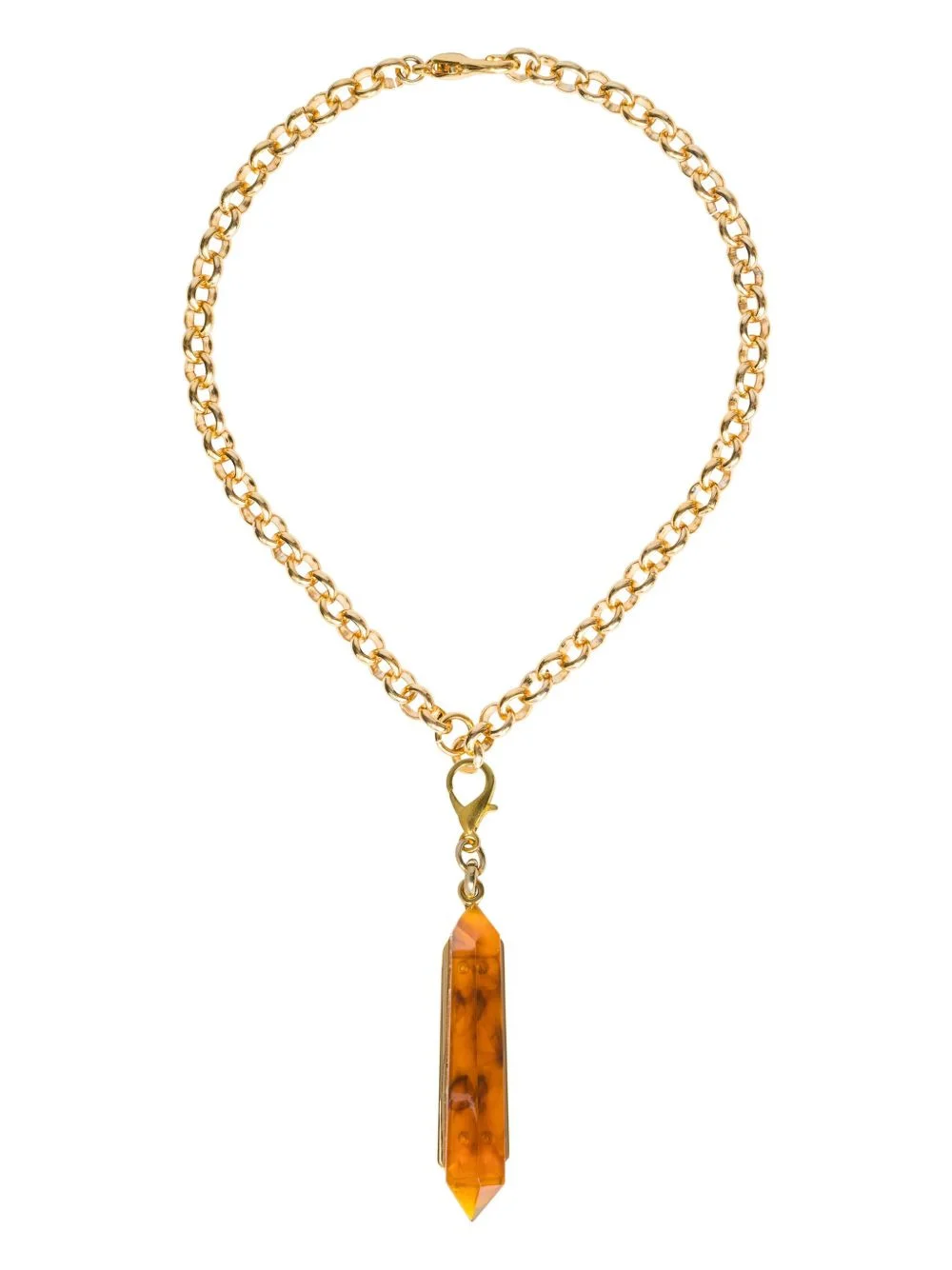 Mariela necklace Highlights - Amber orange - Gold-tone - Gold plated brass - Crystal shaped pendant - Cable-link chain - Lobster claw fastening Made in Italy
